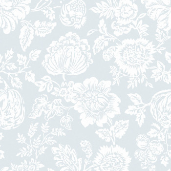 Non-woven wallpaper for walls, floral pattern in shades of blue and white.