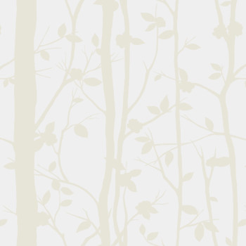 Wallpaper for walls, smooth, matte white background, glossy cream motif of trees and leaves.