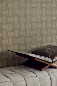 Wallpaper, imitation of decorative natural square paneling, fine texture, in green and grey-green shades.