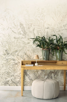 Mural wallpaper, leaf pattern in beige tones.