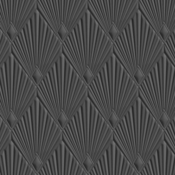 Luxury wallpaper with a vinyl surface, Art Deco geometric pattern, semi-gloss grey-black / anthracite tones; shading creates a three-dimensional effect.