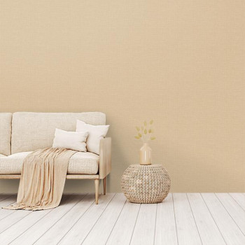 Luxury wallpaper with a vinyl surface, semi-gloss beige tones, authentic coarse textile look with alternating rough and fine fabric textures.