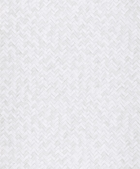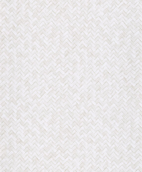 Wallpaper with a subtle embossed woven mat pattern in shades of white and cream.