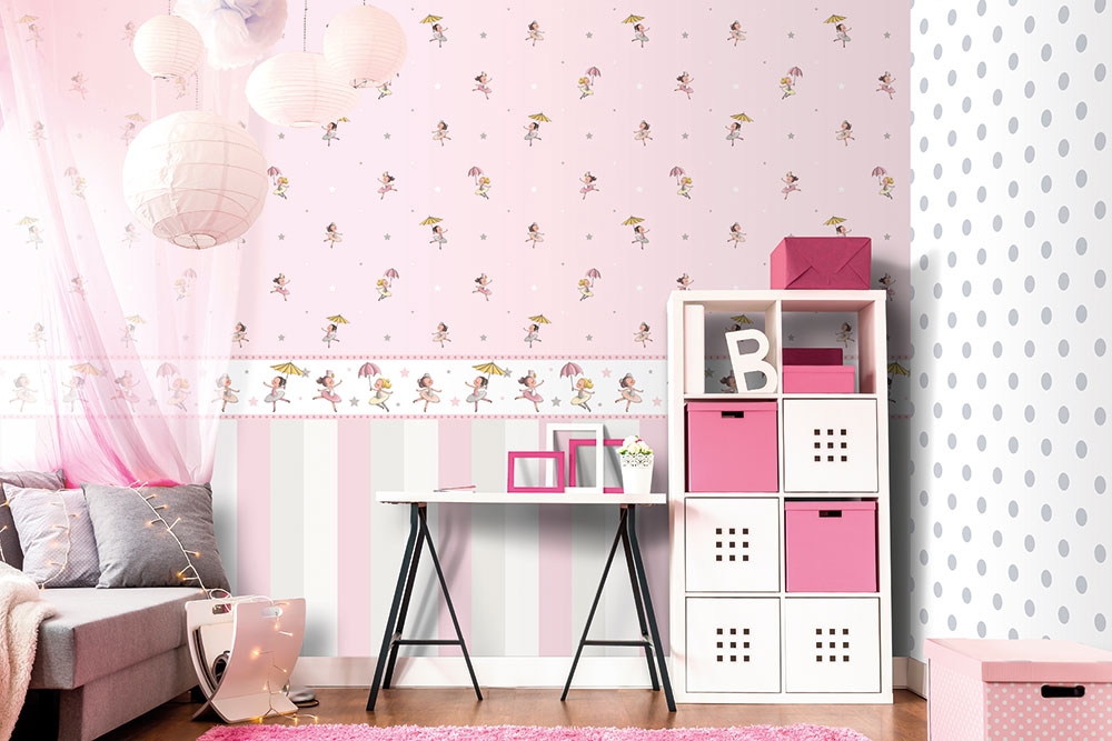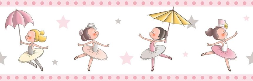 Change the austere walls and create a cozy room, where will your children feel good. Ballerina motifs on a self-adhesive wallpaper border. Combine with related wallpapers and fabrics.