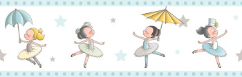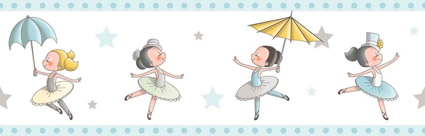 Change the austere walls and create a cozy room, where will your children feel good. Ballerina motifs on a blue self-adhesive wallpaper border. Combine with related wallpapers and fabrics.