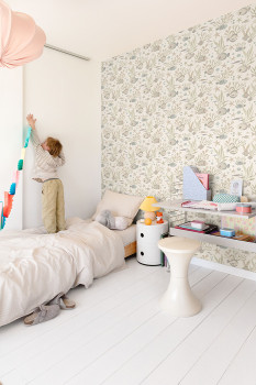 In addition to patterned wallpapers, the collection also offers plain options with a linen-effect texture, which perfectly complement the motifs and allow you to harmonise the room down to the last detail.
