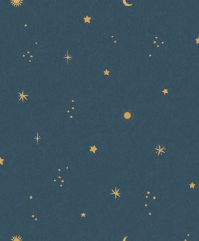Kids non-woven wallpaper, dark blue background, night sky motifs.