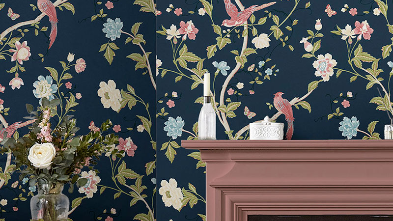 The iconic British brand Laura Ashley brings its signature romantic style into your home – a style that has been loved for nearly seven decades. The Laura Ashley Signature collection offers timeless wallpapers inspired by the brand’s rich archive, featuring elegant floral patterns, peacocks, birds on branches, and classic panel effects.