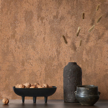Wallpaper with a vinyl surface, brown-bronze plaster finish design, matte and subtle semi-gloss, fine texture.