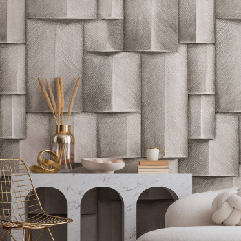 Wallpaper with a vinyl surface, fine texture, graphic pattern with shading creating a 3D effect.