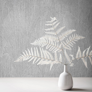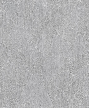 Wallpaper with a vinyl surface, striped texture with leaf outlines in grey and blue-grey tones.