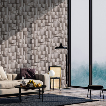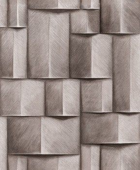Wallpaper with a vinyl surface, fine texture, graphic pattern with shading creating a 3D effect in brown and grey-brown tones.