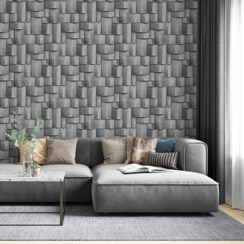 Graphic wallpaper, grey, 3D effect, 35381, Timber, Marburg