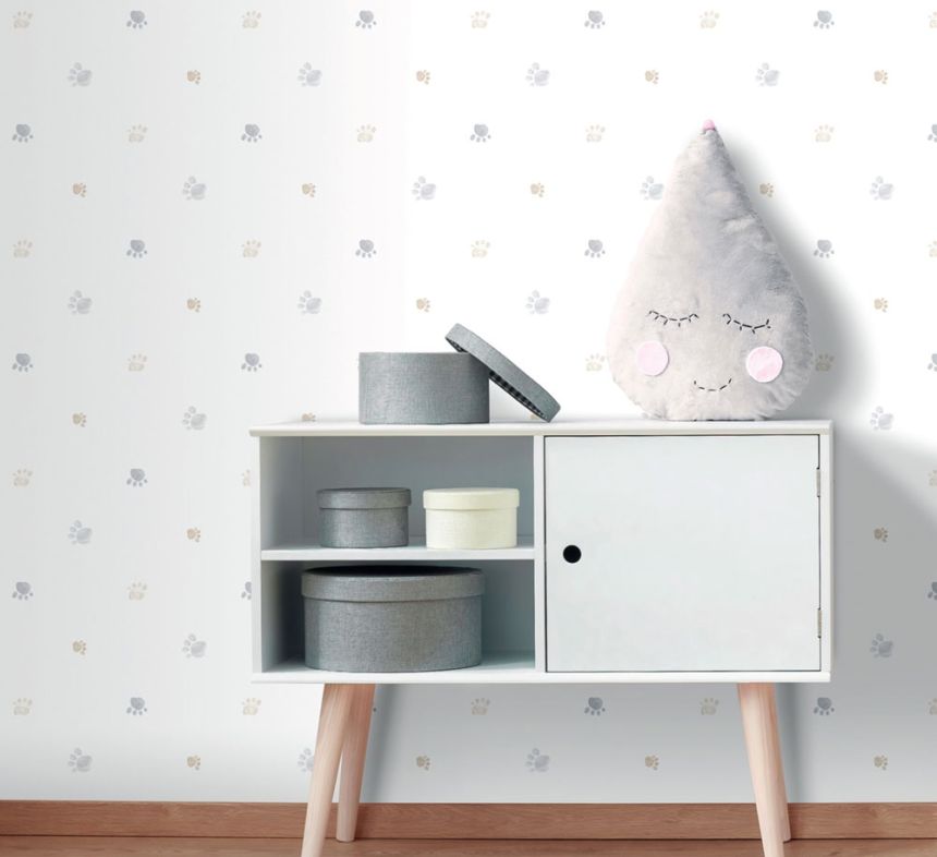 4 PCS IN STOCK, NEXT TO ORDER Change the austere walls and create a cozy room for your little ones. Paw prints in pink and gray shades on a white paper wallpaper. We recommend Beeline adhesive for pasting. Can be combined with borders and other patterns from this collection.