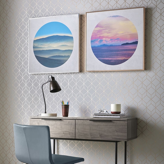 Bring a relaxing feel into your home with this canvas. Warm color shades a rose gold frame add depth.