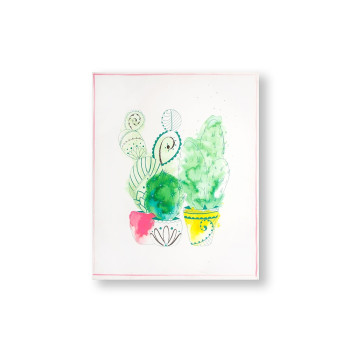 Revive your interior with a watercolor in fresh colors with silver metallic reflections. Printed canvas.