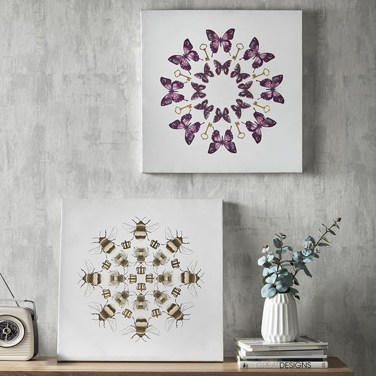 Beautiful bees together with golden crowns bring a luxurious feel to your wall.