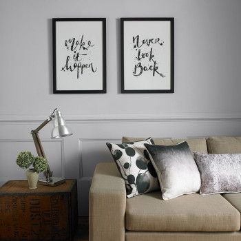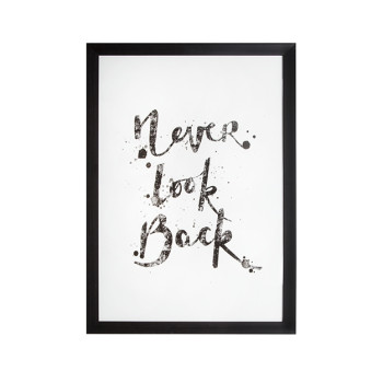 Motivational text "Never look back" in an elegant black frame. Let´s your walls have story and face. The British brand Graham & Brown creates charming images of distinctive motifs that will beautifully fit into your interior and bring a much-coveted atmosphere of harmony and pleasant well-being. The wall will be attractive again, and every look will evoke a feeling of warm joy in you.