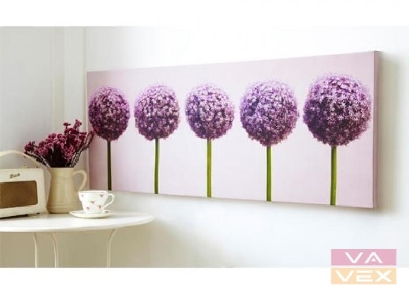 A row of purple Allium flowers on a large printed canvas creates a trendy look on any wall.