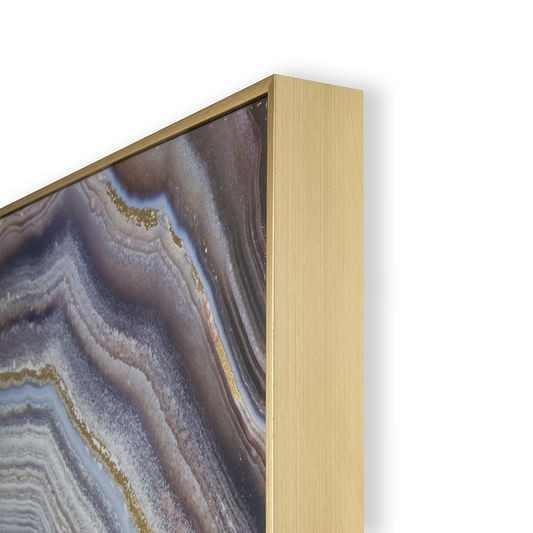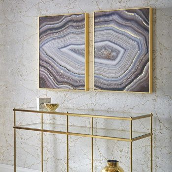 Beautiful natural gems are showcased in gorgeous tones of grey and charcoal perfectly highlighted with hints of gold metallic. Each is beautifully framed within a gold box frame in a statement size to add a luxurious statement to your walls.