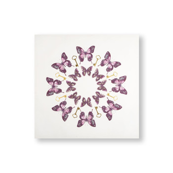 Beautiful butterflies on a printed canvas. The bold vibrant purple tones are perfectly contrasted by the neutral background.