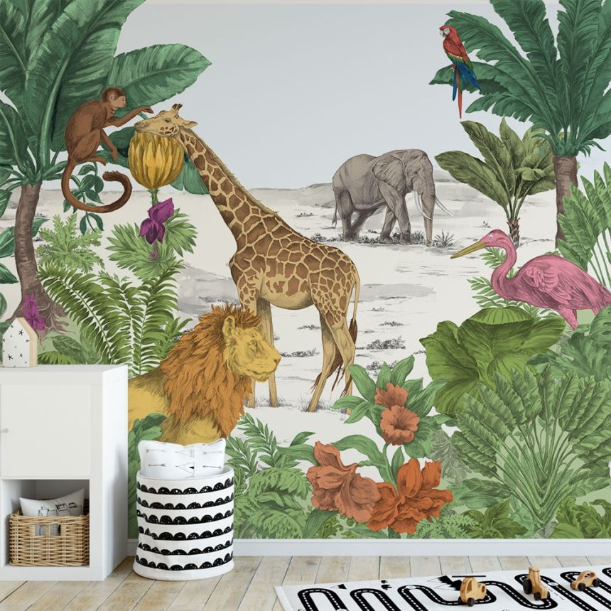 A great adventure with wild animals can be experienced in the children's room. Non-woven wallpaper is easy to stick!