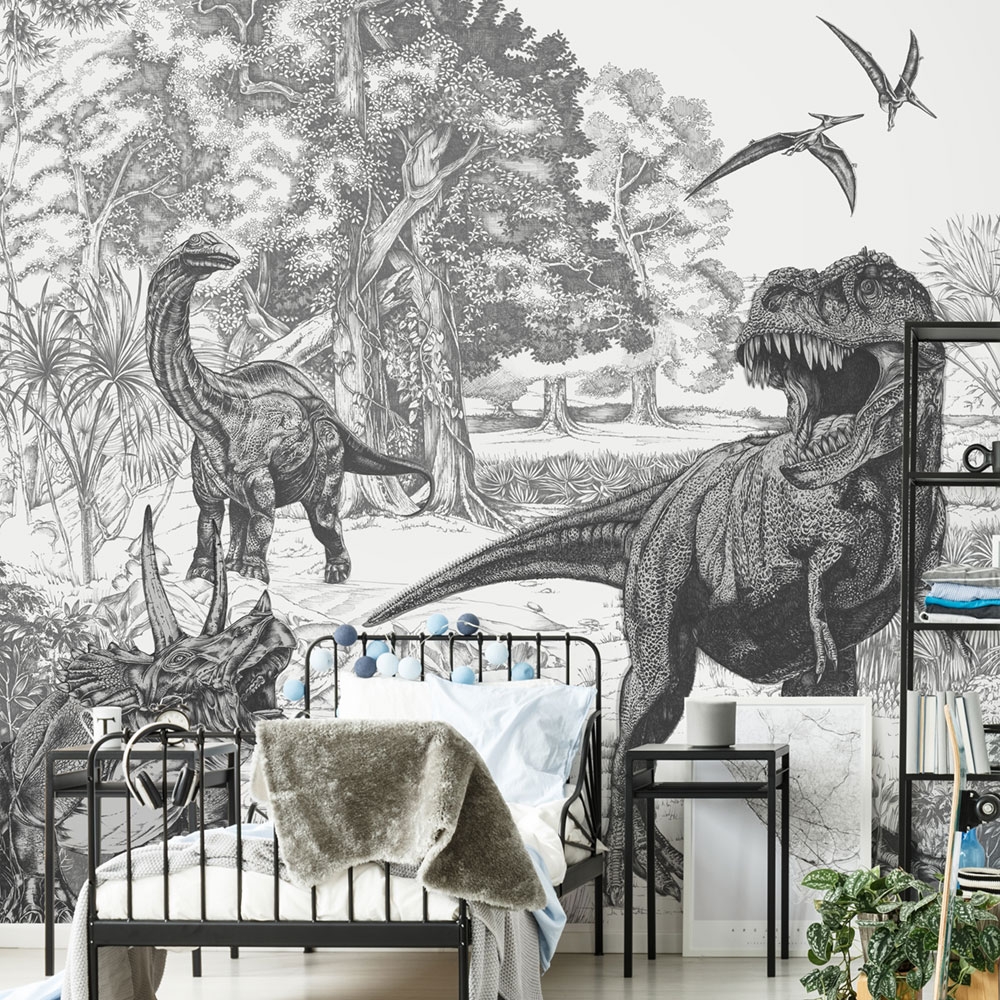 Children's non-woven mural wallpaper Dinosaurs, 111396, Dino Sketch 300 x 280 cm, Kids@Home 6, Graham & Brown