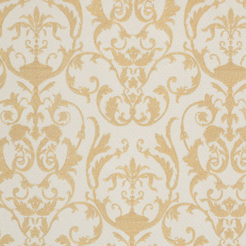 Vinyl, cream wallpaper with a gold ornamental pattern. Soft semi-gloss.