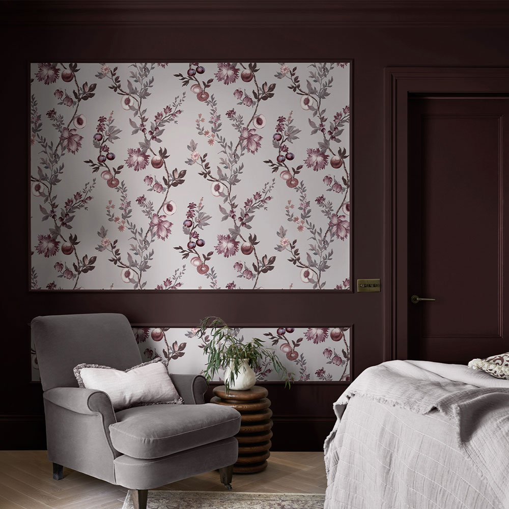 You will find striking floral patterns, ranging from tiny blossoms on dark backgrounds that feel bold, elegant, and slightly seductive, to softer variations on light backgrounds. A beautiful feature is the branches of peach trees and other fruit trees, full of blossoms and fruit, adding a sense of naturalness, freshness, and a romantic atmosphere to the wallpapers.