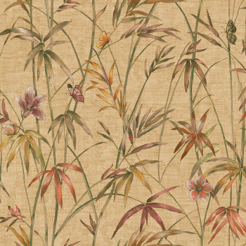 Wallpaper, beige, green, textile texture, plants, Z81044, Philipp Plein 2, Zambaiti Parati