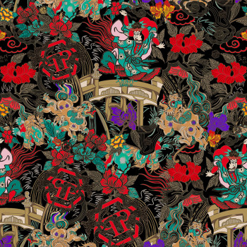 Wall mural, black, red, figures, flowers, Z81079, 2x3 m, Philipp Plein 2, Zambaiti Parati