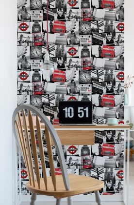 Paper collage wallpaper London, 50-841, Fresco London Montage Black/Red, Kids@Home 6, Graham & Brown