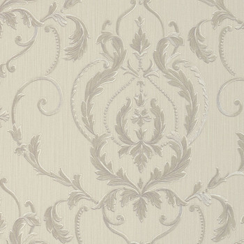 Vinyl, cream wallpaper with a metallic baroque pattern.