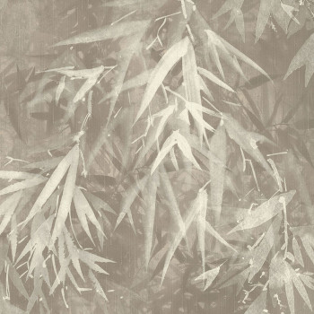 Non-woven wallpaper with leaves in gray-silver shades, white leaves.
