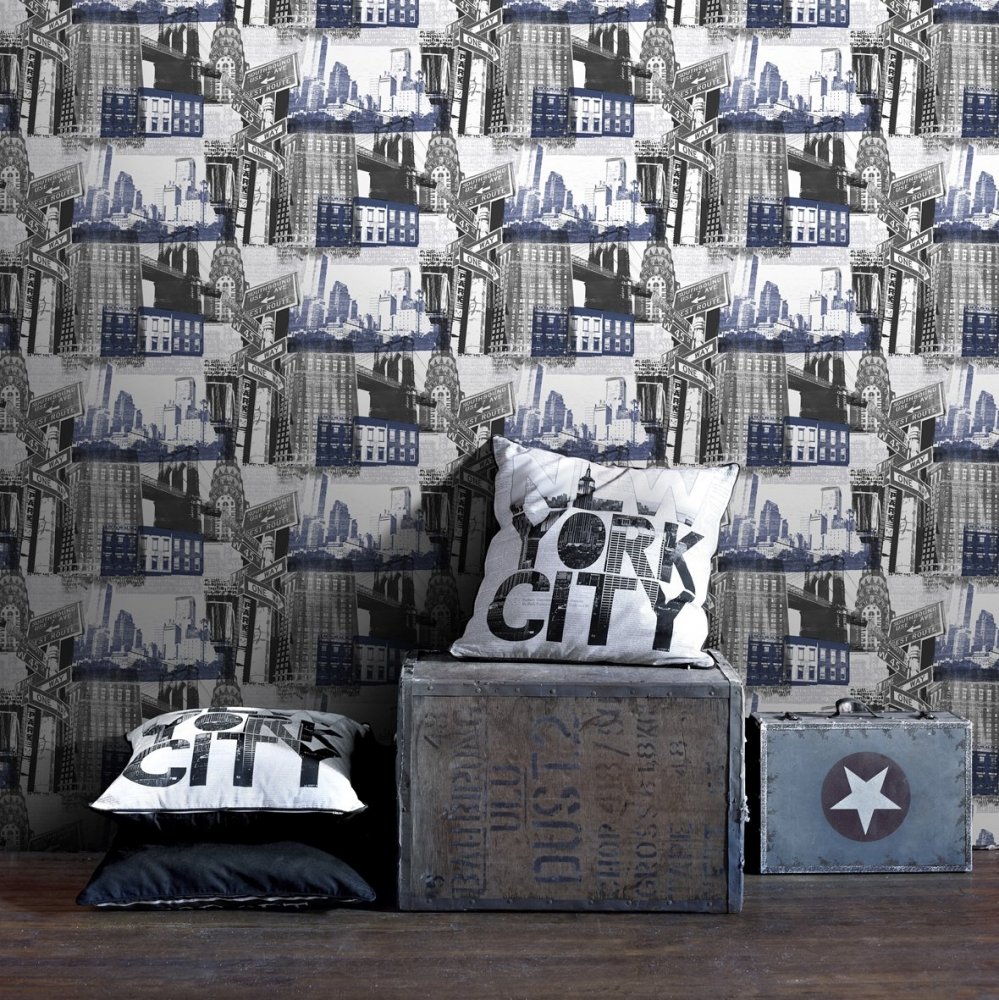 Paper wallpaper, 104631, Fresco New York Blue/Black, Kids@Home 6, Graham & Brown