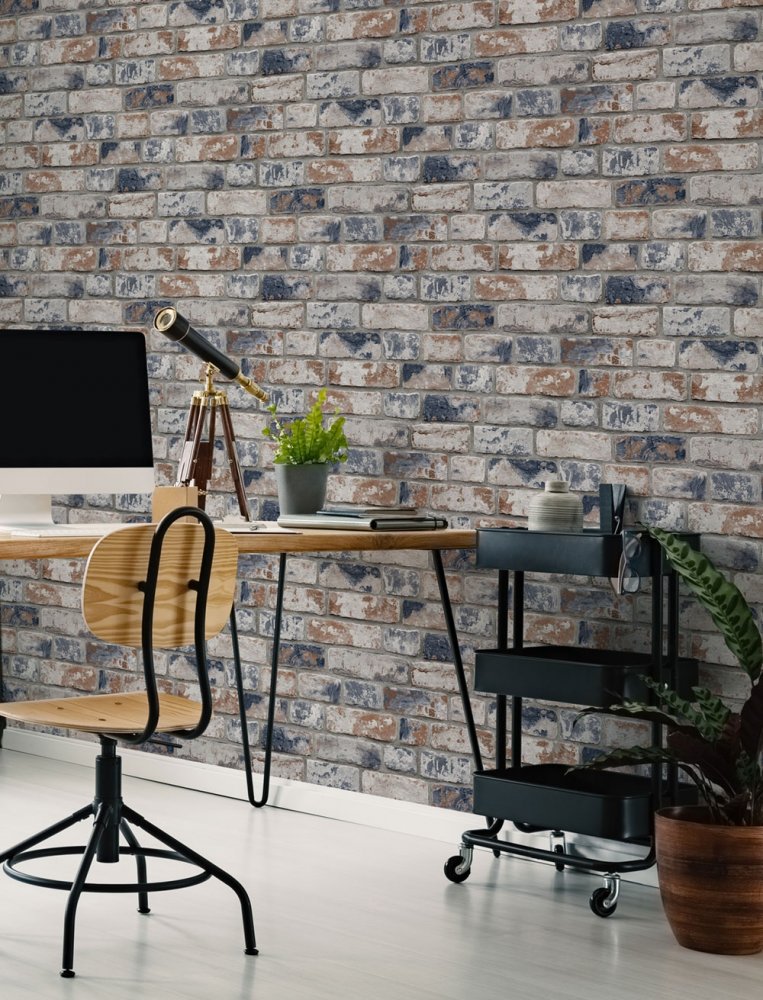 Paper wallpaper Bricks 108596, Distressed Brick Navy Red, Kids@Home 6, Graham & Brown