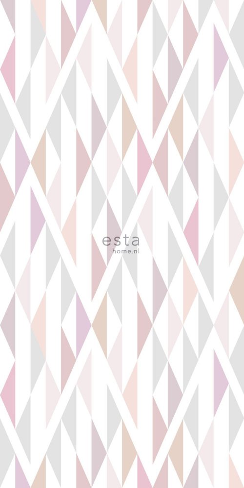 Non-woven wall mural. The geometric pattern is inspired by diamonds, soft pastel colors. 3 panels
