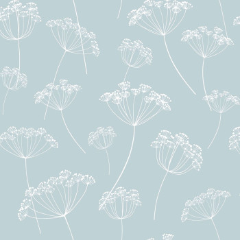 Non-woven, azure blue wallpaper with a white floral motif.