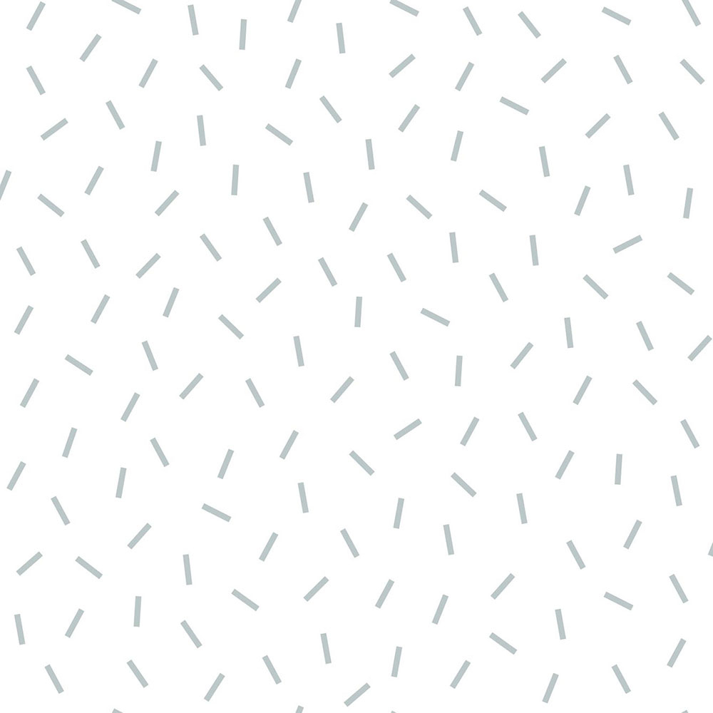 Non-woven, white wallpaper with cheerful gray-green dashes.