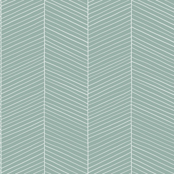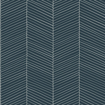 Non-woven, blue wallpaper with a delicate geometric white pattern.