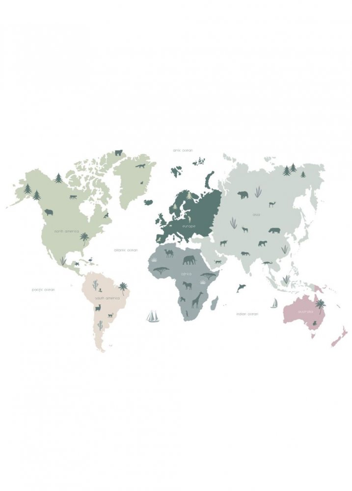 Children's non-woven mural 158929, Mapa Světa, 200 x 279cm, Let's play, Esta