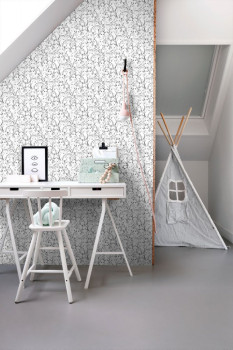 Non-woven white wallpaper with black line drawing of female faces. Beautiful wallpaper suitable not only for girls' rooms.