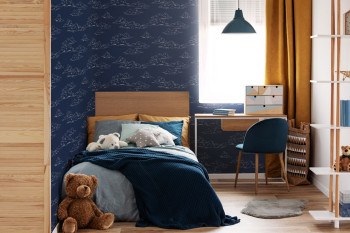 Let yourself to be carried away on a cloud ... Easily combined restrained children's wallpaper in navy blue colour.