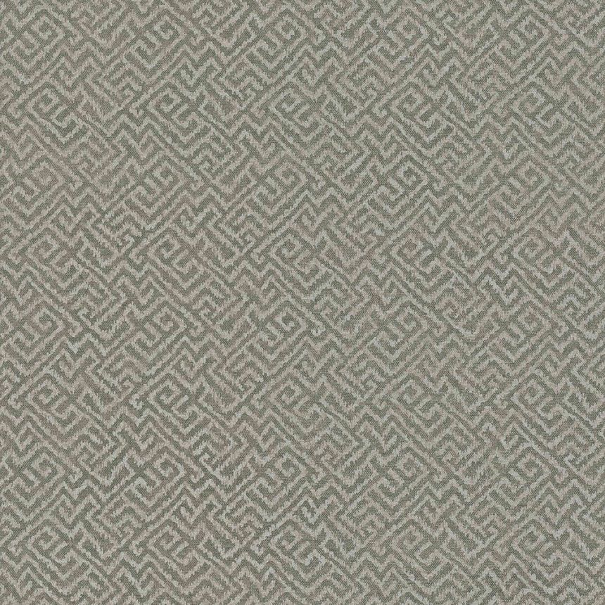 Non-woven wallpaper with a geometric pattern in shades of gray, brown and green.