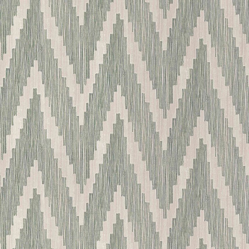 Non-woven green-beige wallpaper with a geometric pattern.