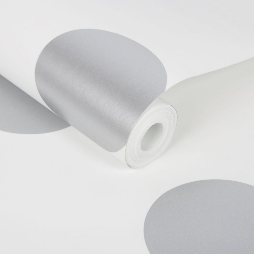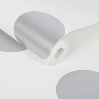 The polka dot will bring a new dimension and originality to your interior. Metallic shiny silver polka dots on white non-woven wallpaper. Ideal combination with white-silver stripes.