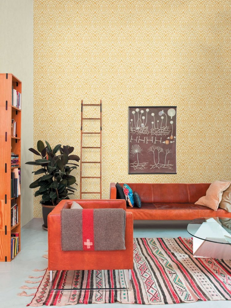 Wallpaper collection JV 171 Ikat - Trendy collection of wallpapers in ethno style, inspired by Indonesian and Malaysian culture, will bring not only colorful playfulness to your home, but you can also choose wallpapers with regular delicate patterns in muted natural colors.