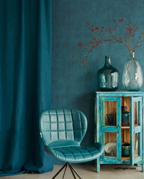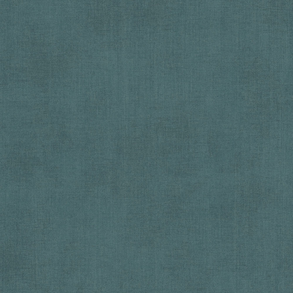 Non-woven, blue-green wallpaper with a fine fabric texture.