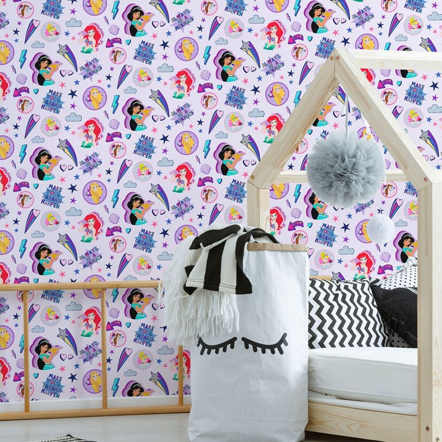 Bring a fairy-tale world into the children's room. Disney Princess wallpaper for your little princess's room.