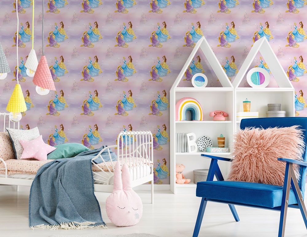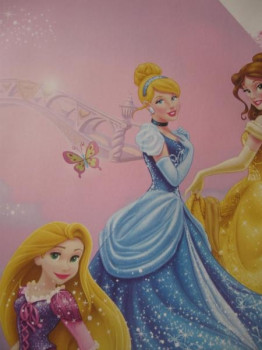 1 PC IN STOCK, NEXT TO 14 DAYS Bring a fairy-tale world into the children's room. Disney princesses on a pink paper wallpaper.